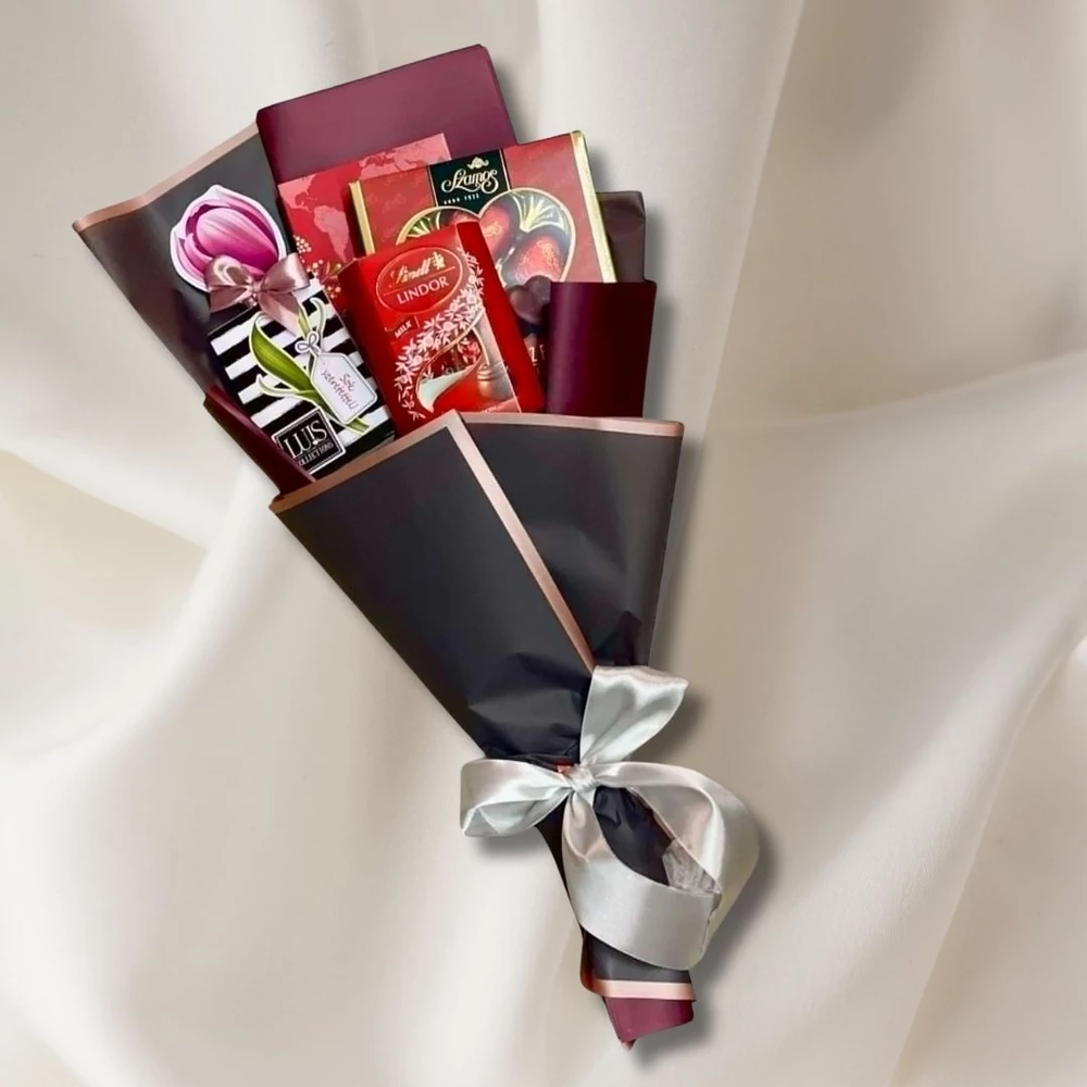 Étcsokoládés áfonya: Gyönyörű tulipános díszcsomagolásban. Csokoládéval bevont, prémium minőségű áfonya, 59% étcsokoládéval. „Sok szeretettel” felirattal.