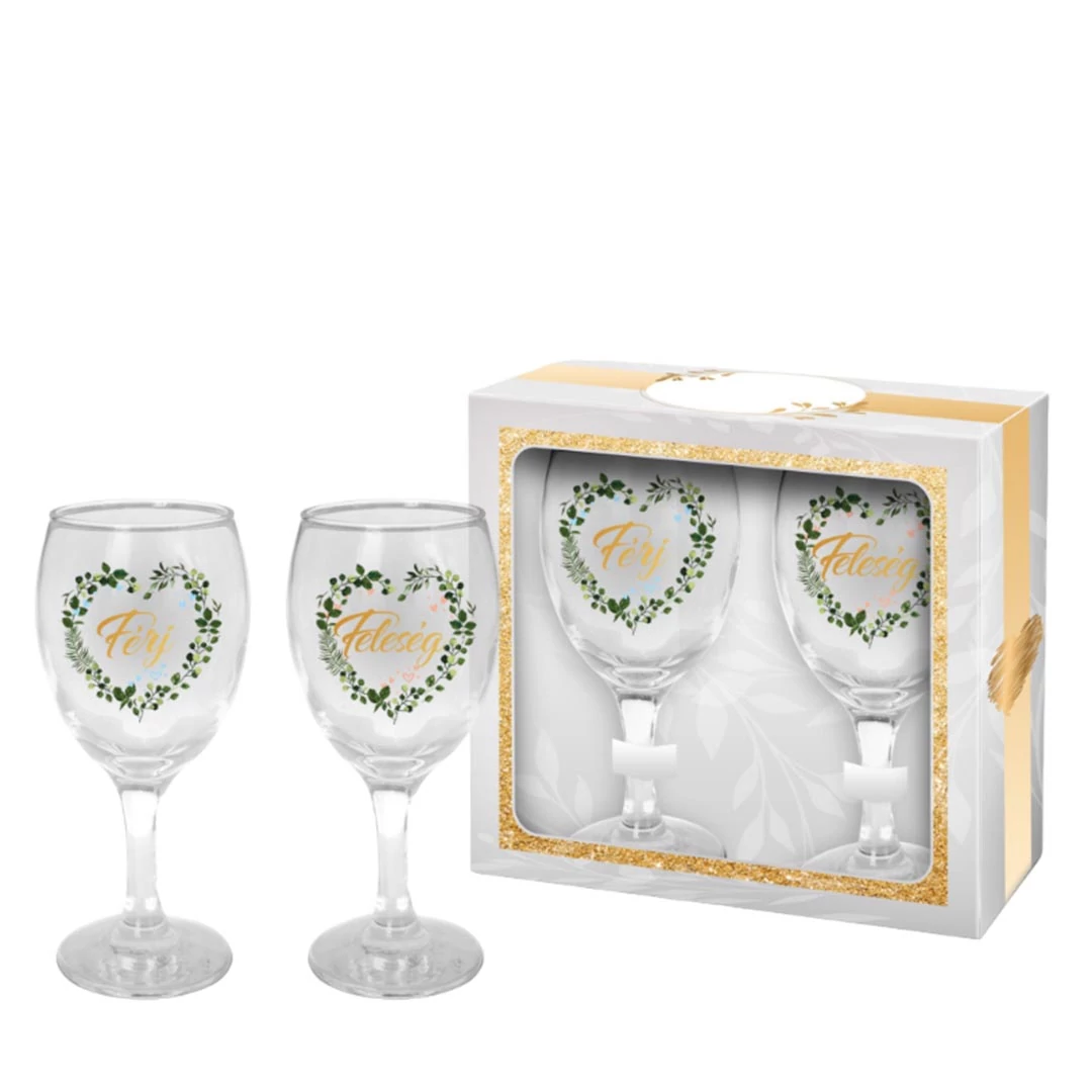 Esküvői borospohár: Férj, Feleség felirattal