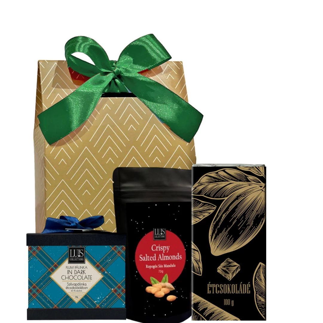 Sós mandula: Sós, pörkölt mandula ünnepi csomagolásban
