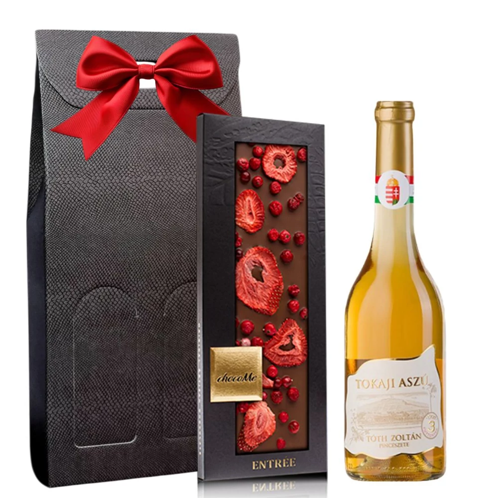 Tokaji Aszú 3 puttonyos: Tóth Zoltán Pincészetéből. A Tokaji Aszú évszázados receptúra alapján, tölgyfahordós érleléssel készül. Különleges minőségű magyar desszertbor, amely gasztronómiai kiegészítés nélkül is, megállja a helyét.