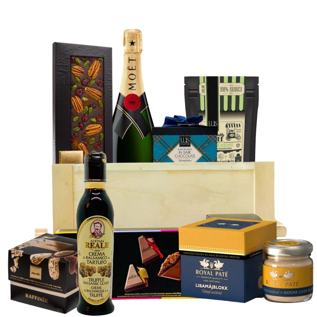 Kényeztesse szeretteit egy igazán különleges ajándékcsomaggal, amely ínycsiklandozó ízekkel és különleges aromákkal kényezteti az érzékeket. Ez a gondosan összeállított ajándékcsomag ideális választás lehet mindazok számára, akik szeretnék megosztani a gasztronómiai élvezetek örömét másokkal. A minőségi termékek és az exkluzív faláda kombinációja garantálja a felejthetetlen élményt.