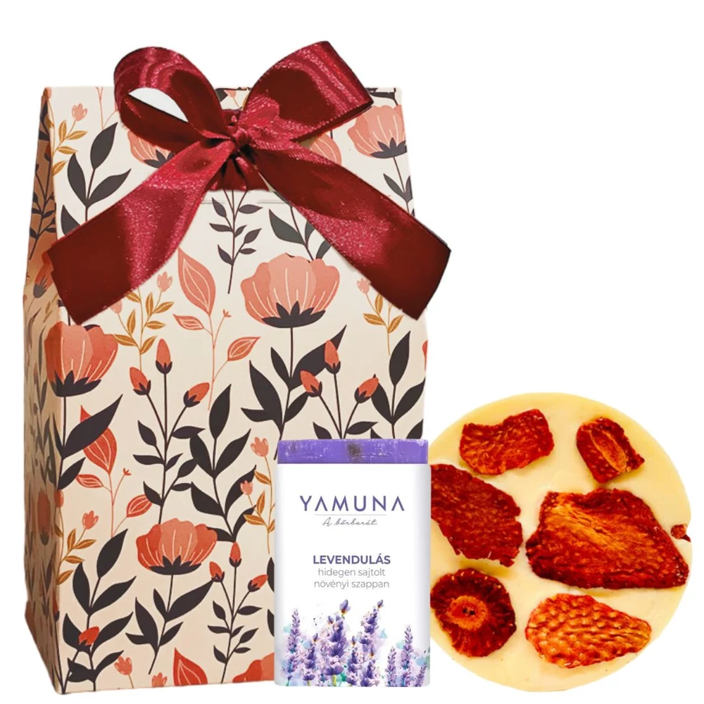 Válasszon olyan céges ajándékot, amely egyszerre szép és hasznos! A virágos boxban rejlő növényi szappan és kézműves csokoládé tökéletes harmóniát alkotnak. Ajándékozzon élményt és kényeztetést nőnap alkalmából, vagy elismerése jeléül kollégáknak, alkalmazottaknak! Céges ajándékküldés egyszerűen.