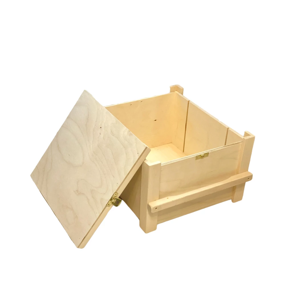 Csatos Faláda Tetővel: A termékeket stílusosan dekorációs szalmába helyezzük.