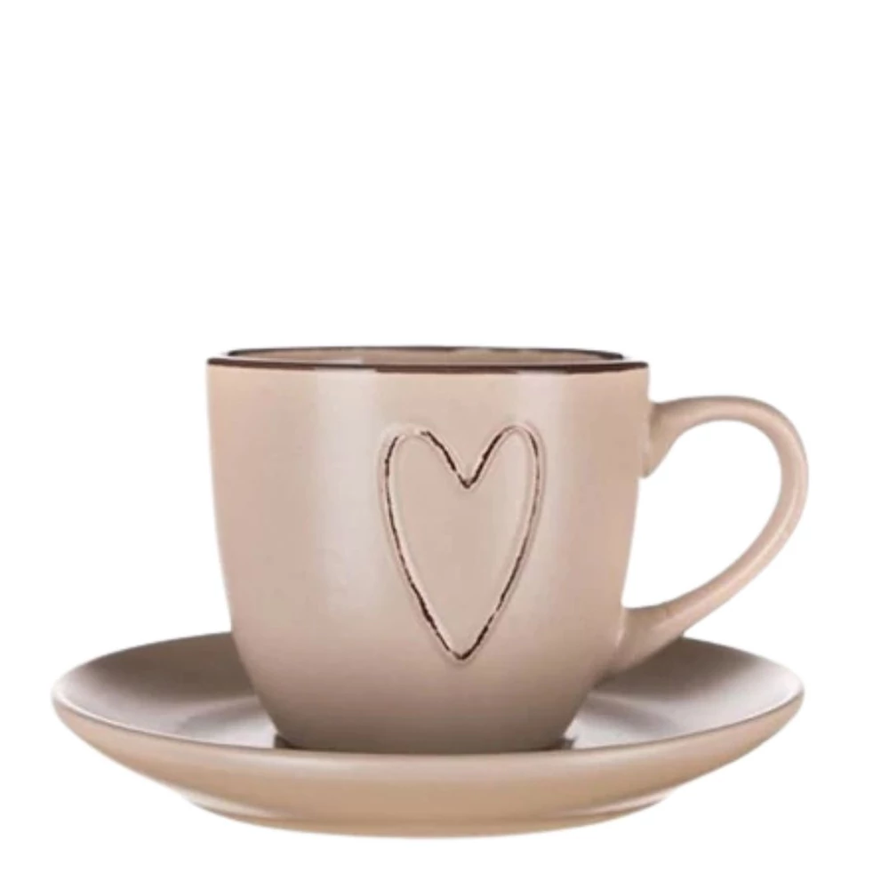 Kerámia csésze, csészealjjal: Bájos, szívecskés kerámia bögre, hogy a kávézás igazán hangulatos, szívet melengető legyen.