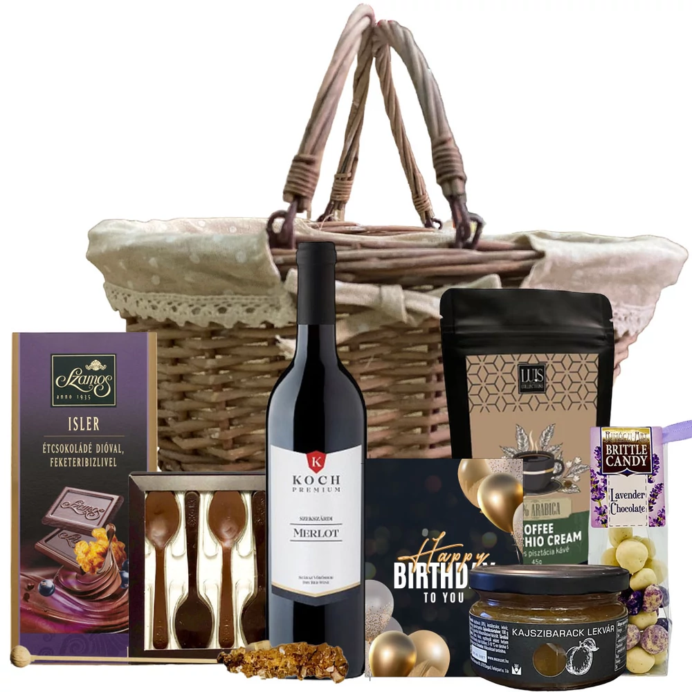 Egy születésnapi ajándékkosárral nemcsak egy ajándékot ad, hanem egy üzenetet. Egy üzenetet, amelyben kifejezheti szeretetét és megbecsülését. A gondosan összeállított kosár minden részében különleges, egyedi minőségű. Csatoljon üzenetet vagy akár saját fotót az ajándékkosárhoz, hogy még egyedibbé varázsolja.