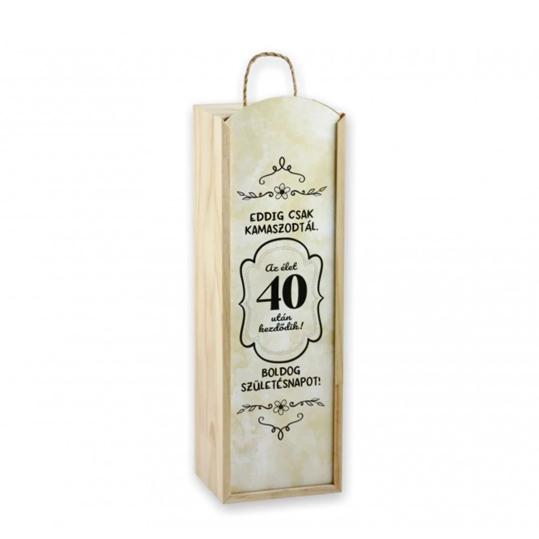 Fából készült bortartó: Boldog születésnapot felirattal, egy üveg bor részére.