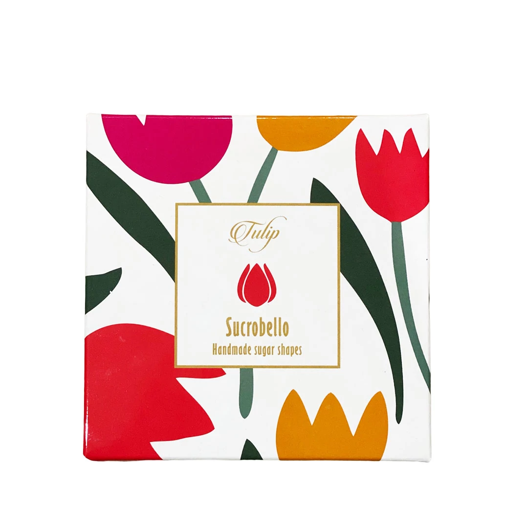 Tulipán formájú cukorka: Nádcukorból készített kézműves tulipán formacukor kávé, tea limonádé és koktélok édesítésére, díszítésére. Elegáns, papírdobozos csomagolásban, kizárólag természetes anyagok felhasználásával.