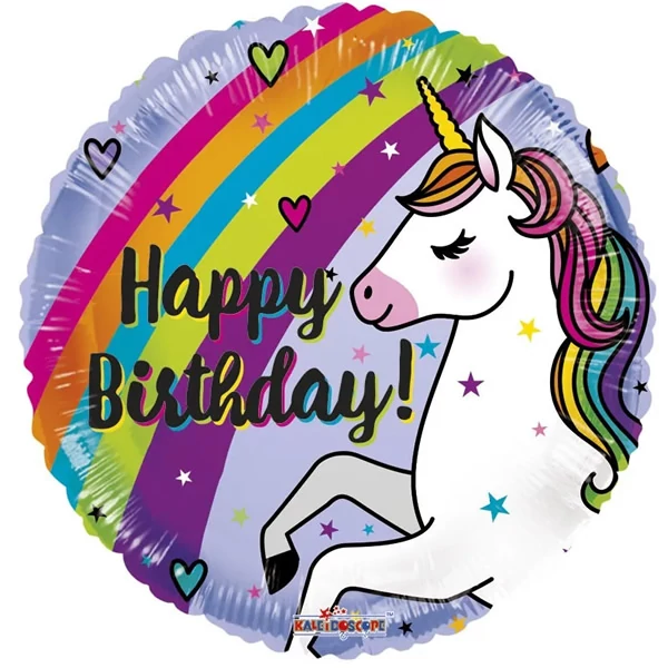 Szivárvány és unikornis szülinapi lufi:  Héliummal töltött szülinapi lufi lányoknak