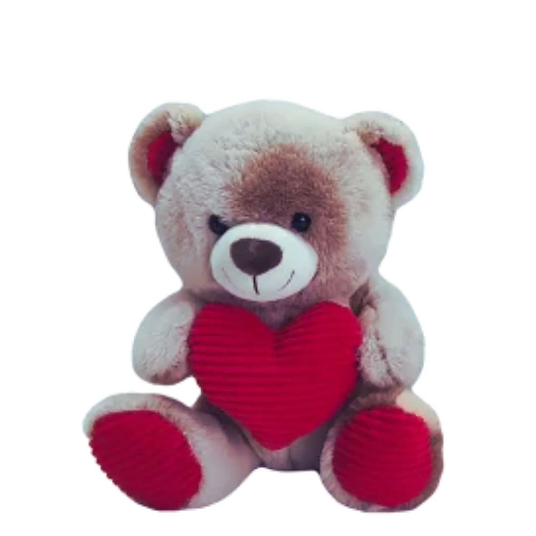 Barna plüss maci: Bájos barna színű maci piros szívvel.