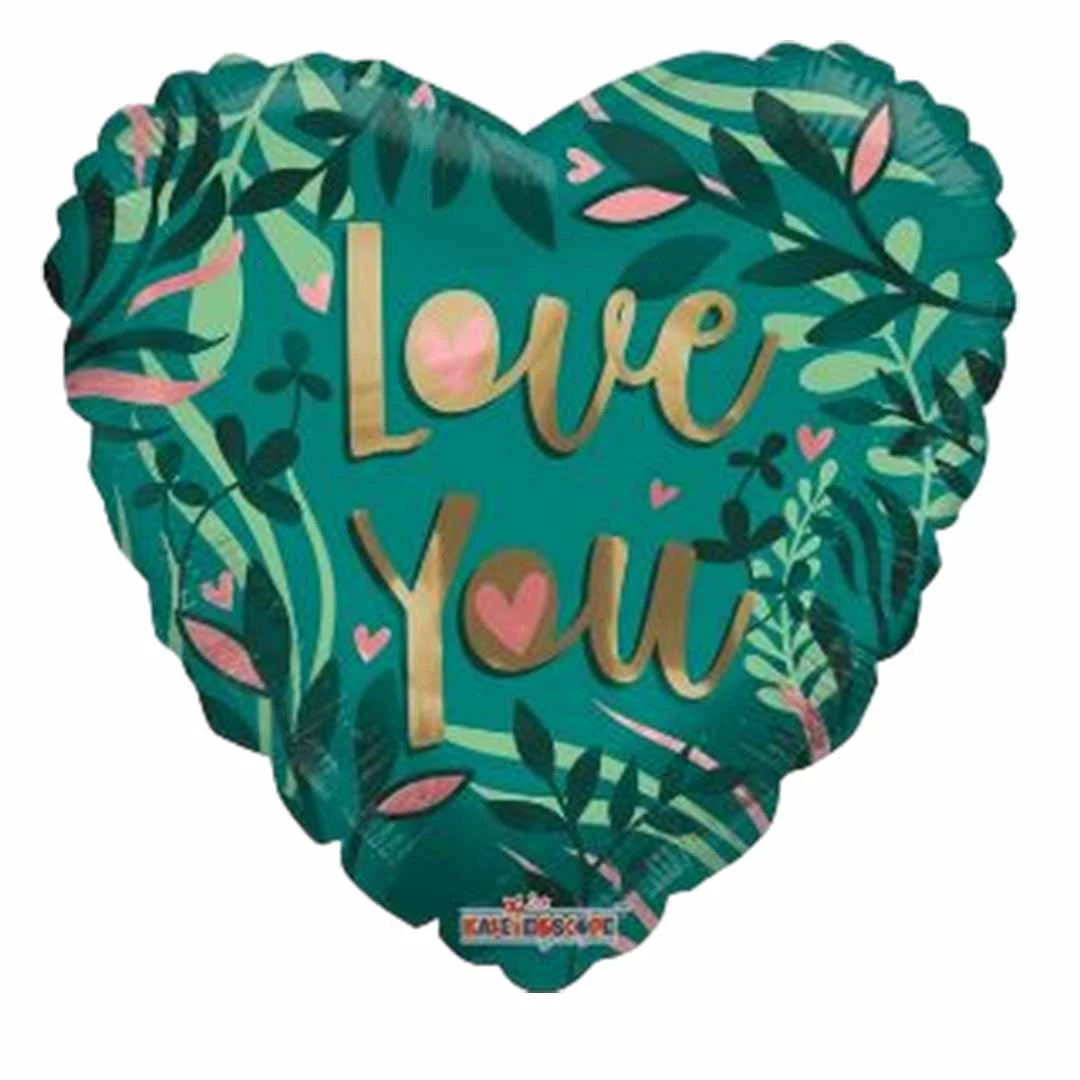 Zöld szív alakú lufi: Héliummal töltött fólia anyagú léggömb